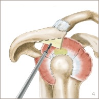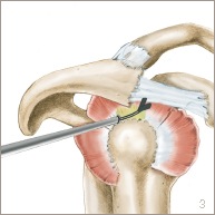 L’intervention est réalisée sous arthroscopie, c’est à dire sans ouvrir l’articulation. Deux ou trois petites incisions de 5 mm chacune sont réalisées autour de l’épaule. Une petite caméra est introduite par l’une d’entre elles pour visualiser l’articulation. Des petits instruments sont introduits par les autres incisions pour réaliser le geste chirurgical.