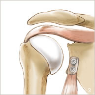 L’intervention consiste à mettre en place un bloc osseux en avant de la glène afin d’empêcher la tête de l’humérus de sortir de son emplacement naturel.
