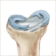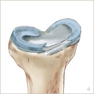 Le genou correspond à l’articulation entre la partie basse du fémur et la partie haute du tibia. Les surfaces de glissement sont recouvertes de cartilage. Les ménisques sont des petits coussinets en forme de croissant situés entre le cartilage du fémur et celui du tibia. Il existe deux ménisques dans chaque genou : un ménisque interne et un ménisque externe (figure 1). Il améliorent le contact et jouent un rôle d’amortisseurs entre le fémur et le tibia. Avec le temps, les ménisques ont tendance à perdre leur hydratation et le cartilage a tendance à s’amincir.