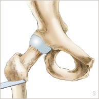 L’intervention vise à mieux répartir les pressions sur le cartilage en diminuant l’angle du col fémoral.