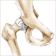 L’arthrose est l’usure du cartilage présent au niveau des surfaces de glissement. Cette usure s’accompagne aussi de remaniements de l’os de la tête du fémur et du cotyle (figures 2 et 5).